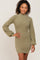 Olive Fuzzy Knit Puff Sleeve Sweater Dress