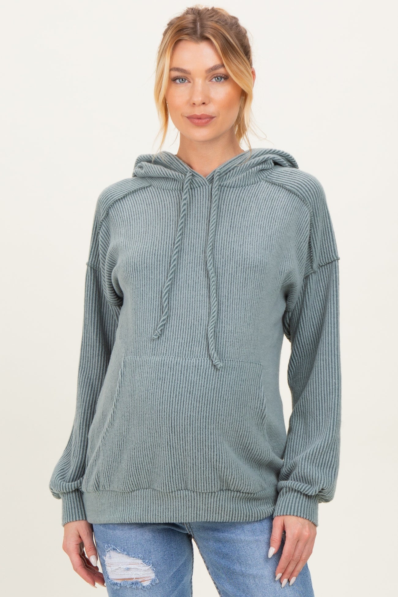 Olive Long Sleeve Brushed Urban Rib Maternity Hoodie Top