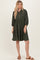 Olive Long Sleeve Button Down Collared Tiered Dress