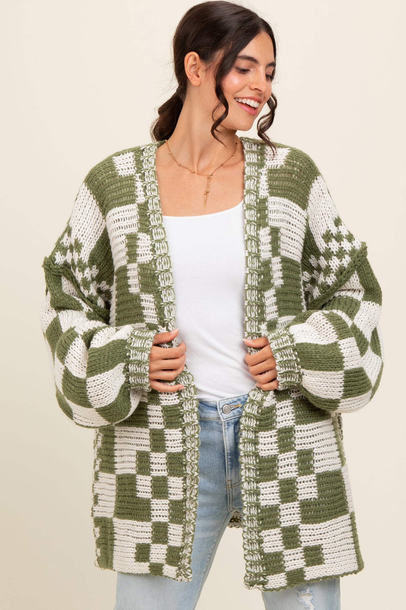 Elevate your cozy wardrobe with our Olive Mixed Check Pattern Chunky Cardigan. This stylish piece features a trendy green and white checkered design that effortlessly blends classic charm with a modern twist. Crafted with a thick, soft knit, it offers exceptional warmth and comfort, perfect for layering during chilly days. The relaxed fit and open front design ensure easy wear, while the long sleeves add extra coziness. Pair it with jeans or your favorite casual outfit for an effortlessly chic look. A must-have staple for those who love comfort without compromising on style!