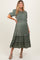 Olive Satin Ruffle Trim Maternity Midi Dress