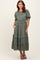 Olive Satin Ruffle Trim Midi Dress