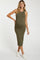 Olive Sleeveless Ribbed Fitted Maternity Midi Dress