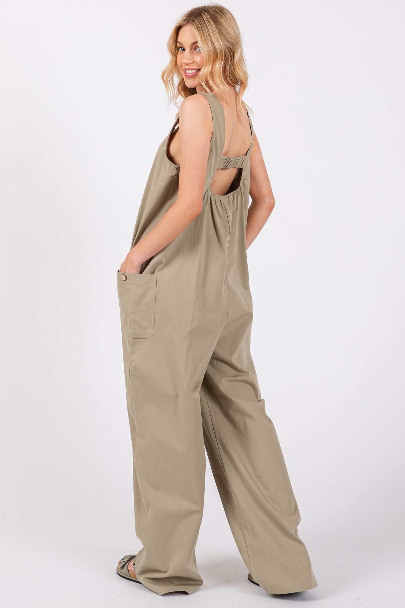 Olive Sleeveless Wide Leg Cutout Back Maternity Jumpsuit