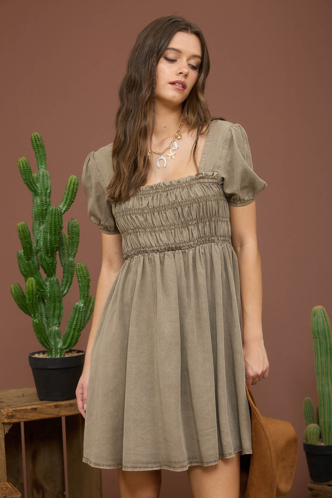 Olive Smocked Puff Sleeve Maternity Mini Dress