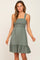 A sold crepe textured dress. Features a smocked top, and gathered detailing at the waist and bottom hem.