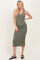 Olive Stripe Ribbed Sleeveless V Neck Maxi Dress