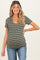 Olive Stripe Short Sleeve Round Neck Maternity Top