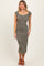 Olive Striped Off Shoulder Side Slit Midi Dress