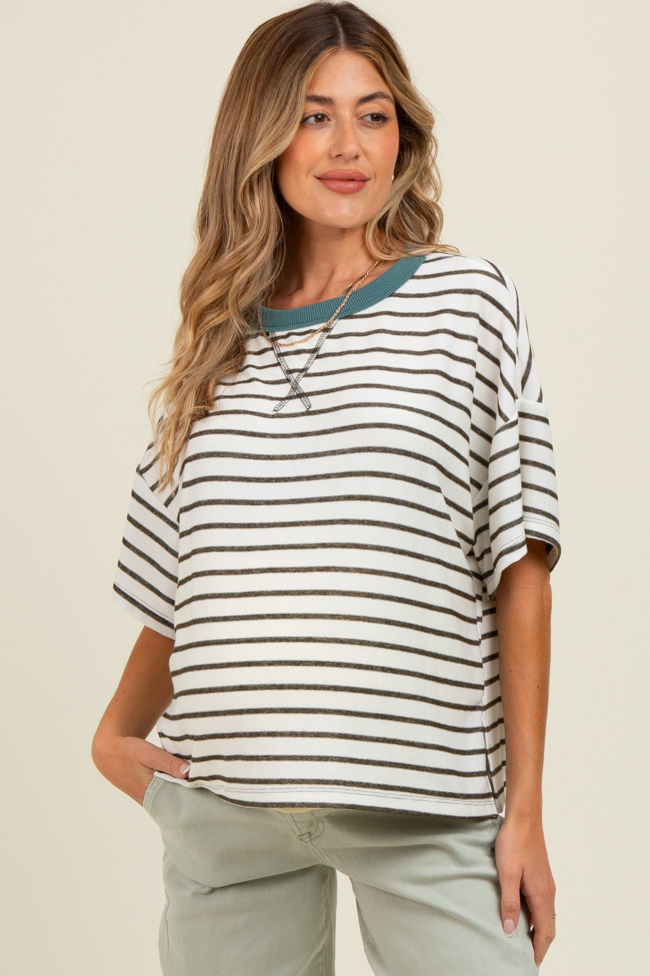 Olive Striped Relaxed Fit Pullover Maternity T-Shirts Top