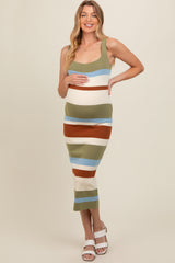 Olive Striped Sweater Square Neck Maternity Midi Dress