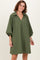 Olive Textured Collared 3/4 Puff Sleeve Dress