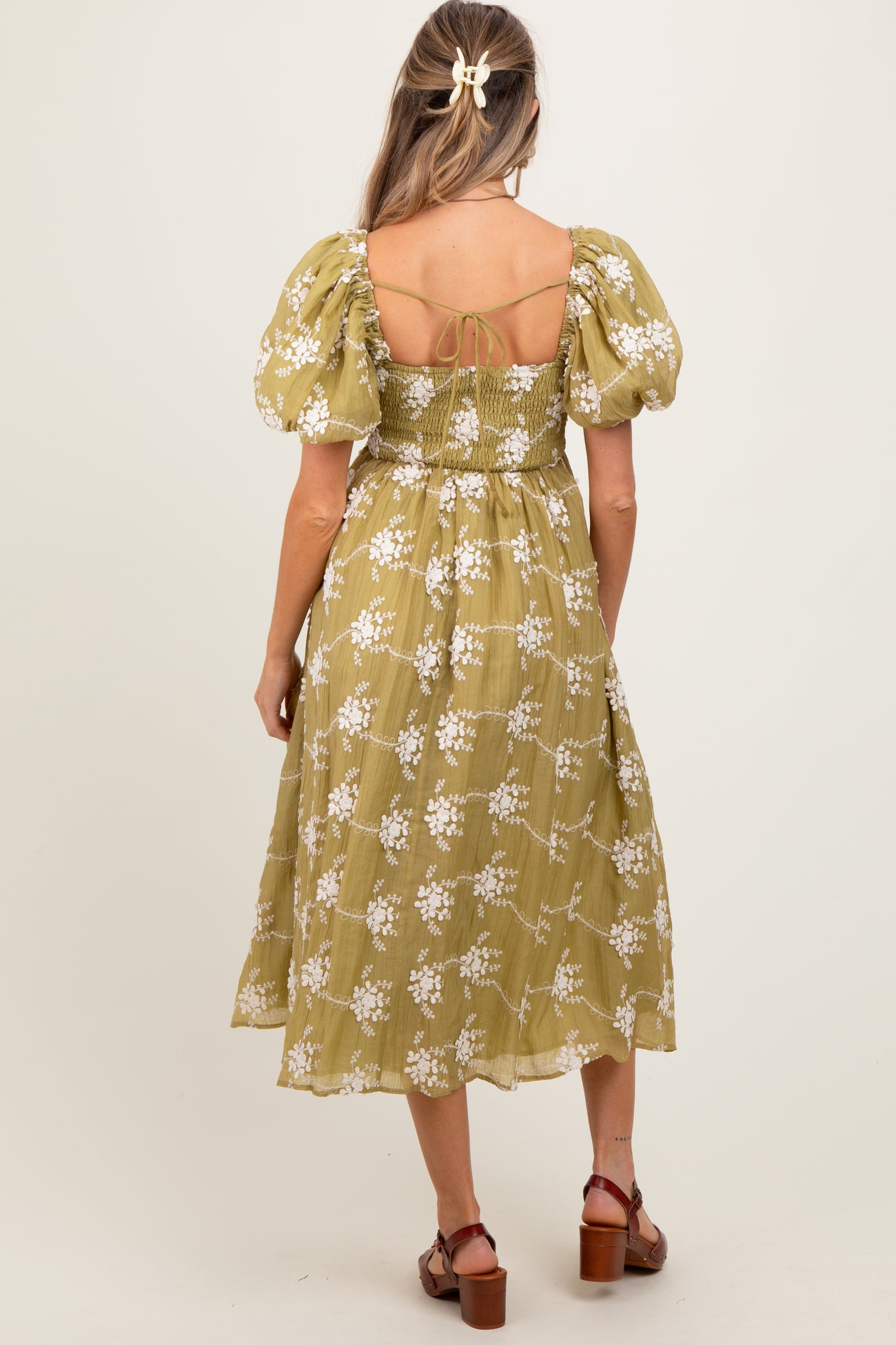 Elevate your maternity wardrobe with this textured midi dress, designed for comfort and style throughout your pregnancy. Featuring a flattering square neckline and romantic puff sleeves, this dress offers a breezy, feminine silhouette that beautifully accommodates your growing bump. The lightweight, breathable fabric is adorned with a delicate floral pattern, adding a touch of elegance to your everyday look. Its empire waistline enhances your figure while providing ample room for movement. Perfect for casual outings, baby showers, or special occasions, this dress combines fashion and function effortlessly. Pair with your favorite sandals or heels for an easy, chic maternity ensemble.