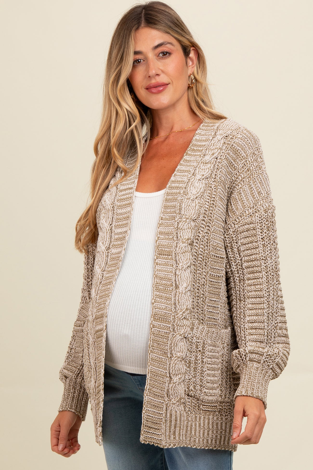 Olive Two Toned Oversized Cable Knit Maternity Cardigan