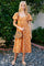 Orange Embroidered Floral Puff Sleeve Midi Dress