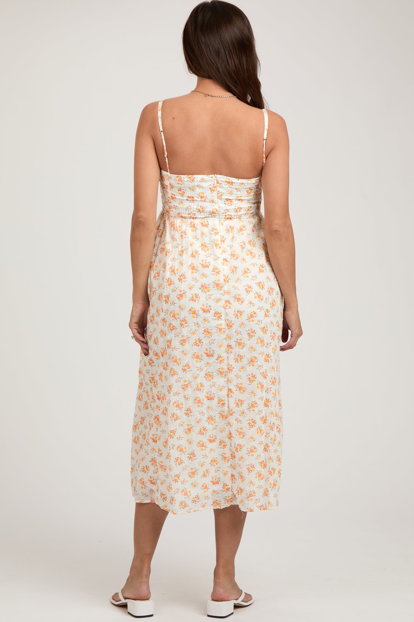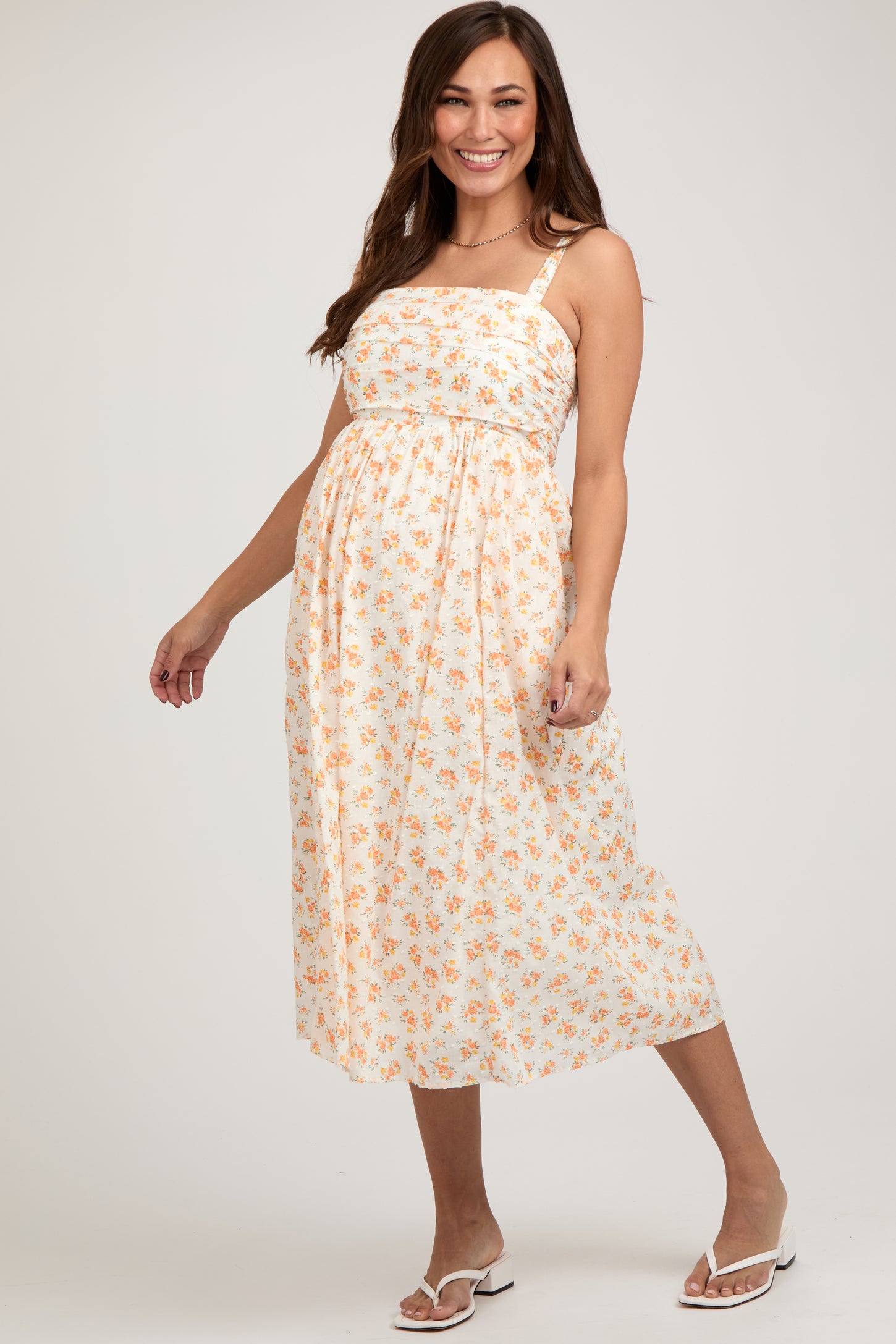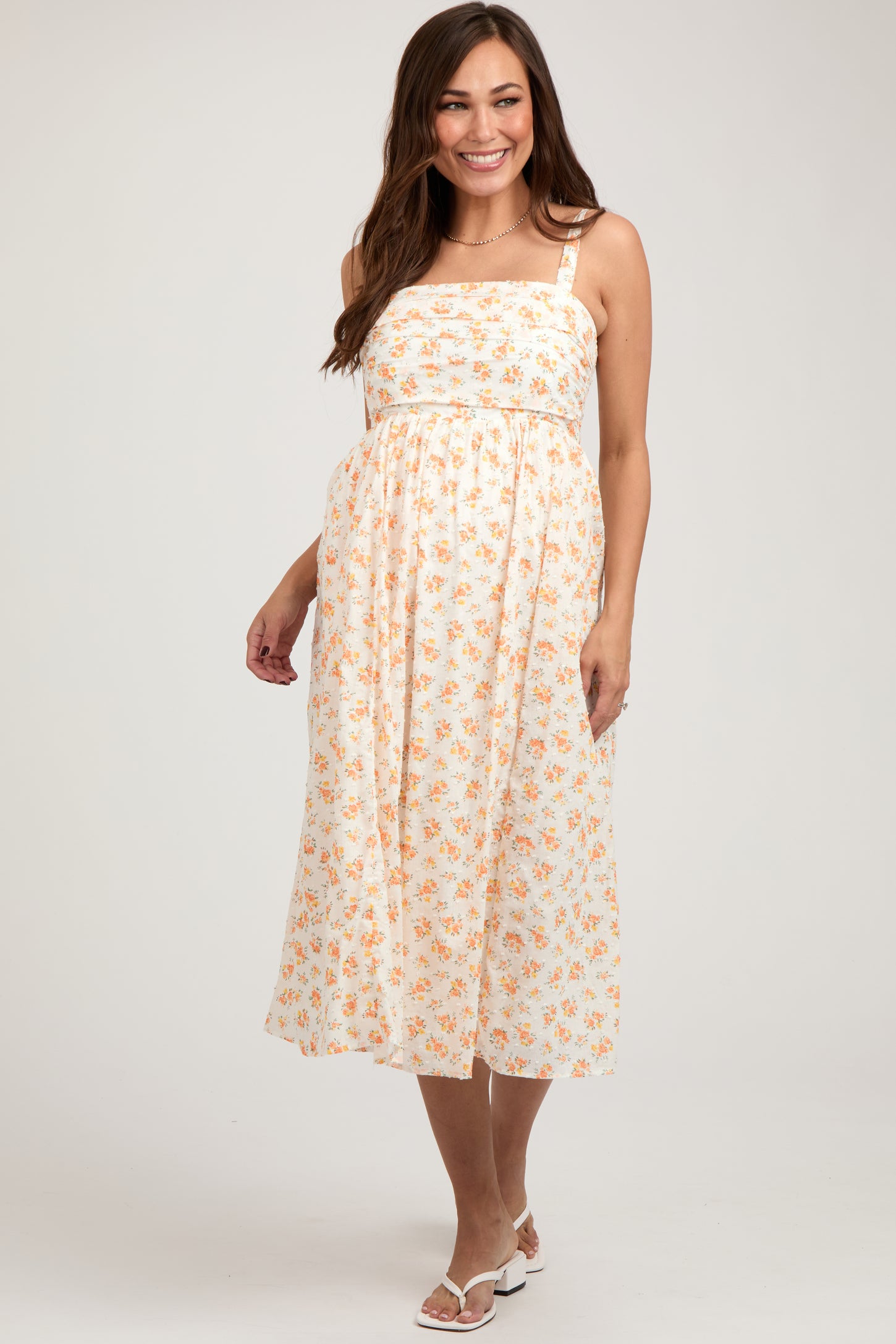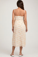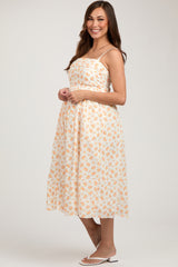 Orange Floral Textured Dot Square Neck Maternity Midi Dress