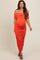Orange Off Shoulder Ruched Maternity Midi Dress