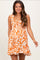 Orange Printed Smocked Ruffle Strap Maternity Dress