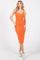 A solid ribbed sleeveless dress featuring a v-neckline.