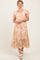 Peach Floral Pleated Bust Puff Sleeve Midi Dress