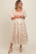 Peach Floral Smocked Puff Sleeve Maternity Midi Dress