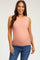 A semi sheer knit sleeveless maternity top with a round neckline.