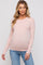 A solid hued maternity top featuring long sleeves and a rounded neckline.