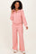 Peach Ribbed High Neck Half Zip Pullover Pant Set