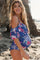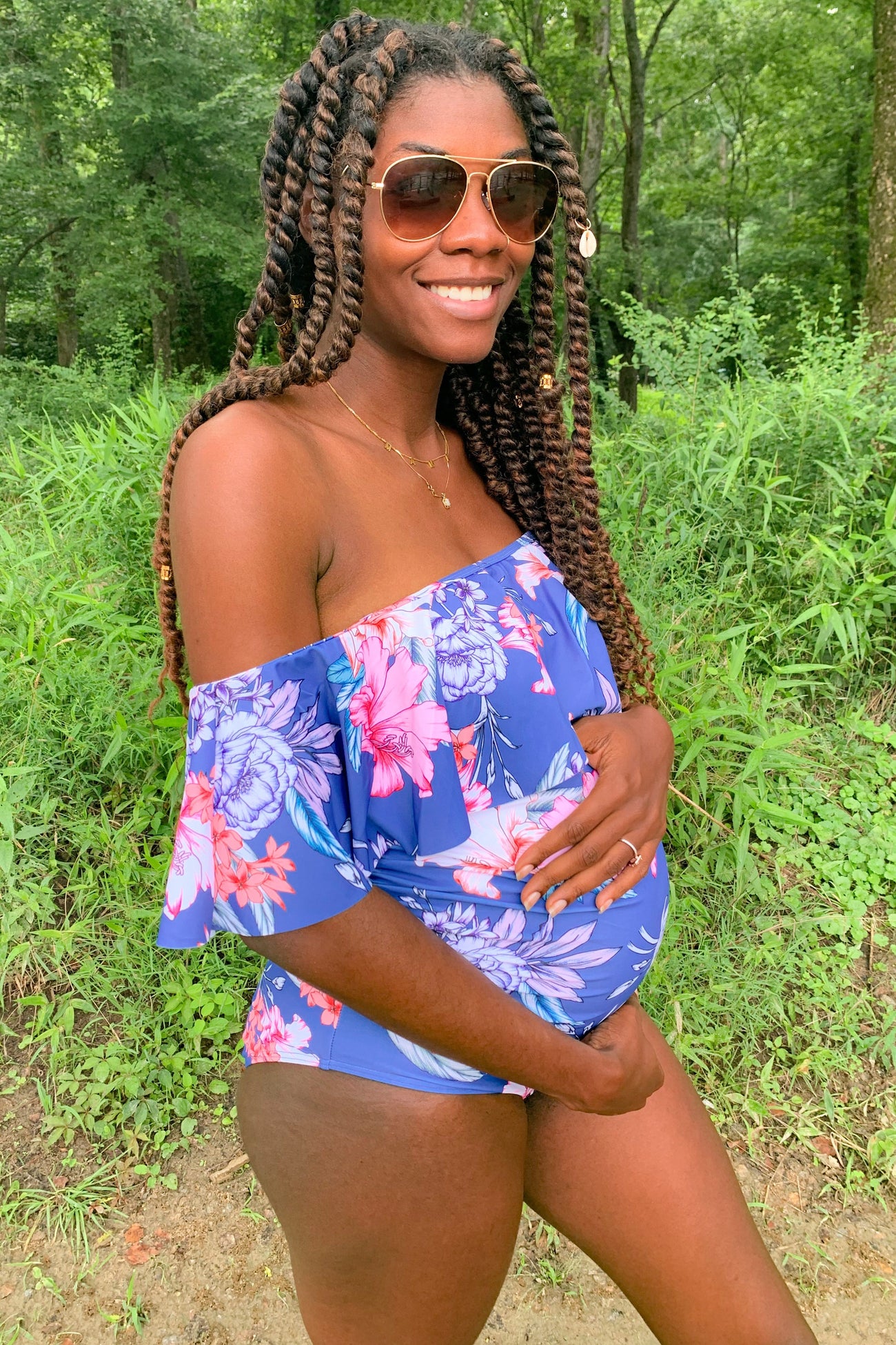 Periwinkle Floral Ruffle Trim Ruched One-Piece Maternity Swimsuit