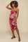 Pink Abstract Floral Ruched Side Slit Maternity Midi Dress