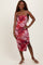 Pink Abstract Floral Ruched Side Slit Midi Dress