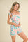 Pink Baby Blue Floral Romper With Scallop Stitch Trim