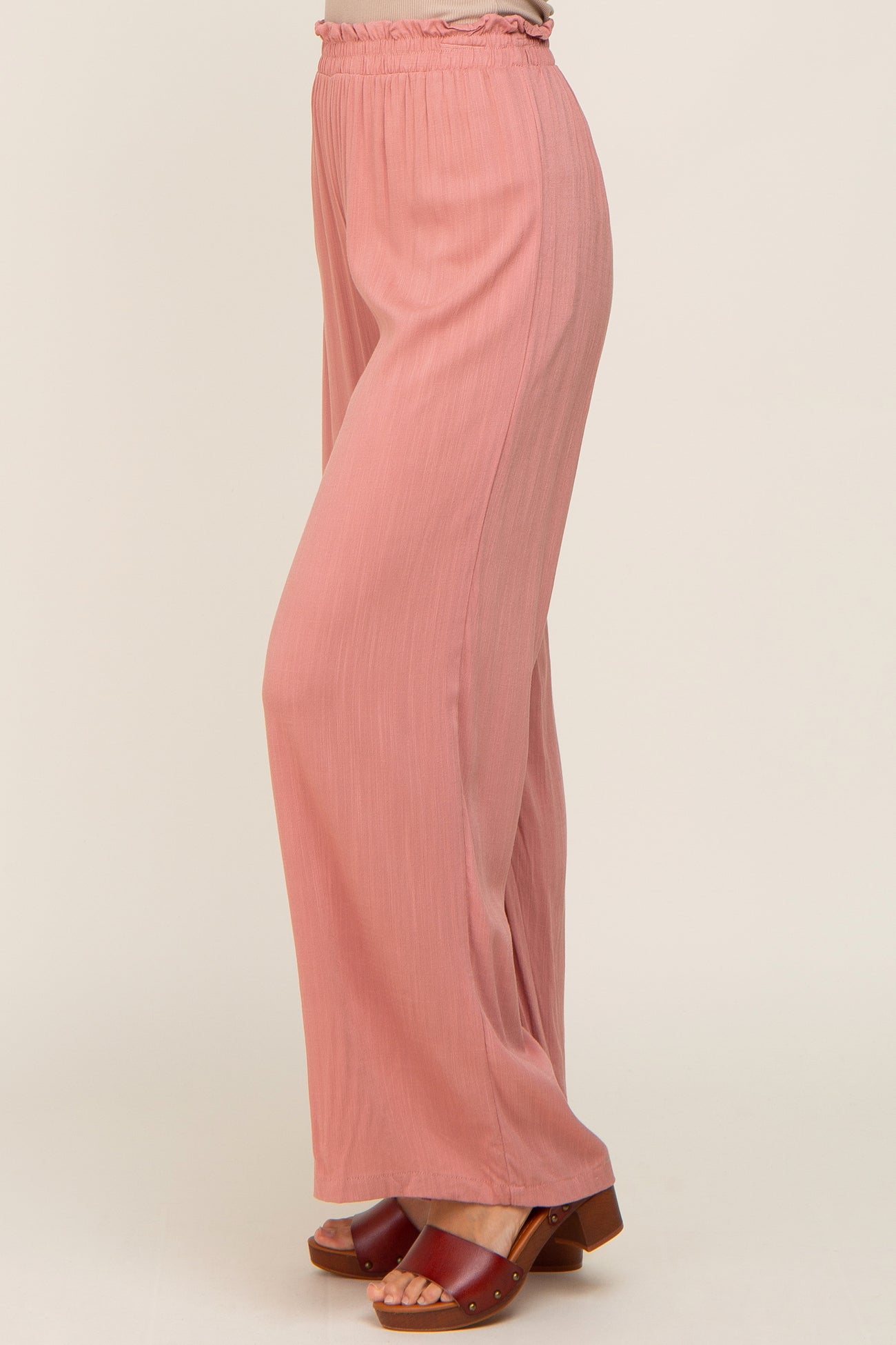 A pair of basic pants. Include wide legs and an elastic waistband.