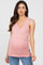A sleeveless maternity nursing top. Features crossover neckline and side ruching.