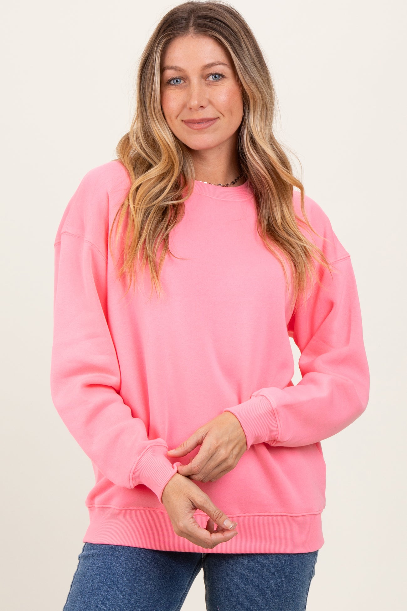 Pink Fleece Crew Neck Relaxed Fit Sweatshirt