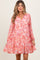 Pink Floral Chiffon Babydoll Long Sleeve Maternity Dress