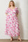 Pink Floral Chiffon Puff Sleeve Plus Midi Dress