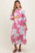 Pink Floral Print Cinched Tie Waist Maternity Shirt Dress