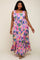 Pink Floral Ruffle Strap Plus Size Maxi Dress
