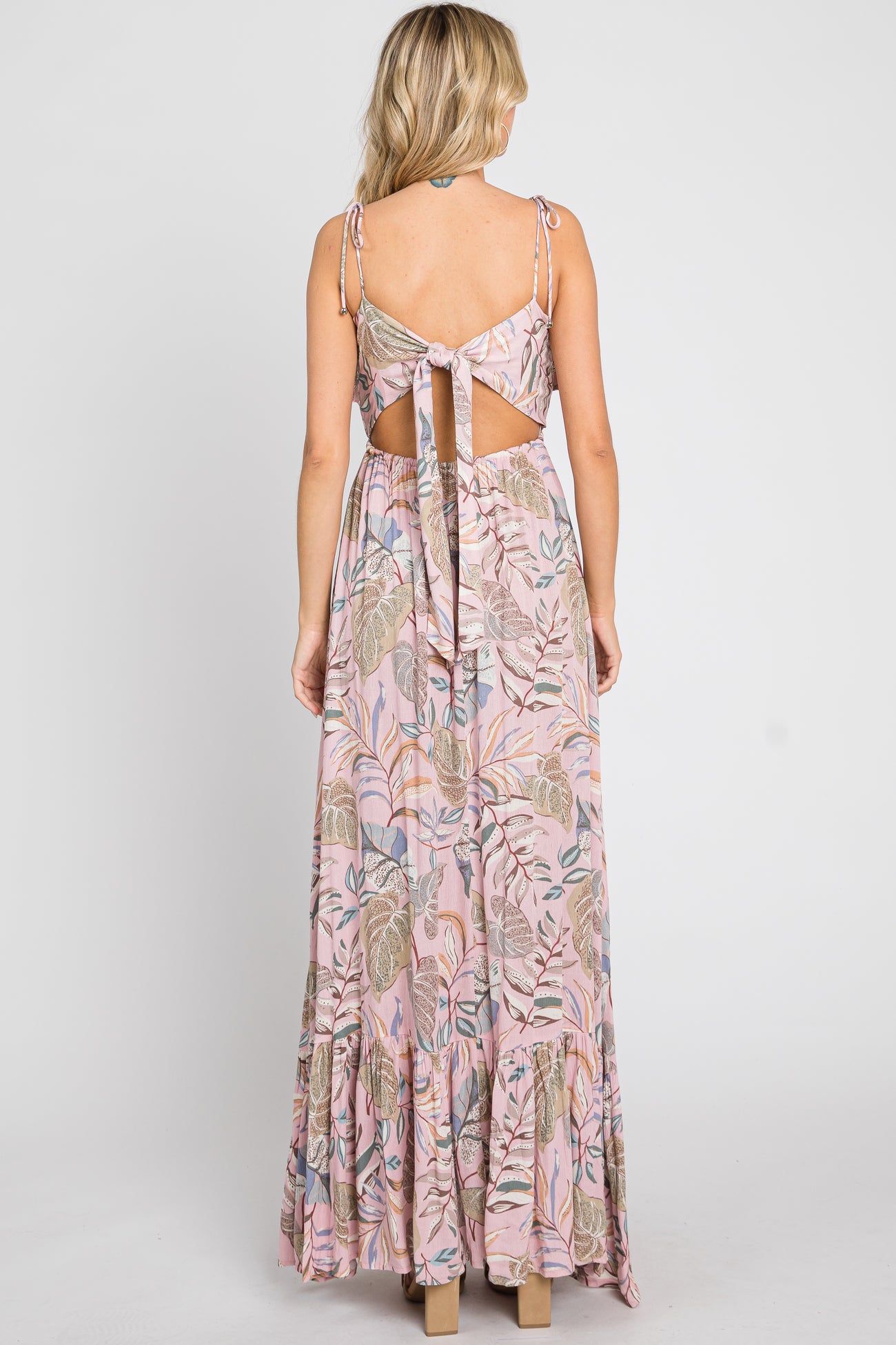 Pink Floral Ruffle Top Back Cutout Maxi Dress