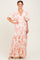 Pink Floral Satin Short Sleeve Deep V-Neck Tiered Maxi Dress