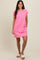 Pink Front Pocket Line Textured Short Sleeve Dress