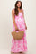 Pink Leaf Print Sleeveless Open Back Smocked Maternity Maxi Dress