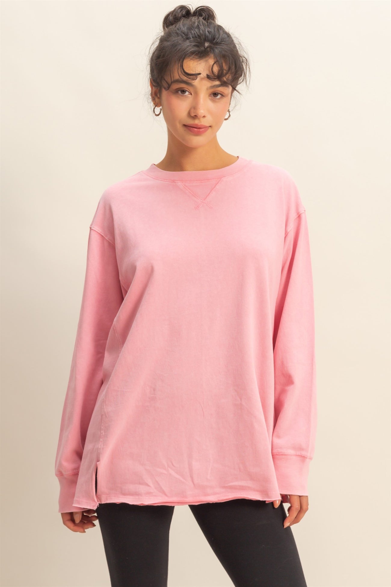 Pink Mineral Washed Drop Shoulder Long Sleeve Top