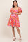 Pink Printed Smocked Puff Sleeve Maternity Mini Dress