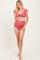 Pink Ribbed Ruffle Shoulder Front Tie High Waist Two-Piece Maternity Swimsuit