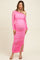 Pink Ruched Mesh One Shoulder Long Sleeve Maternity Maxi Dress