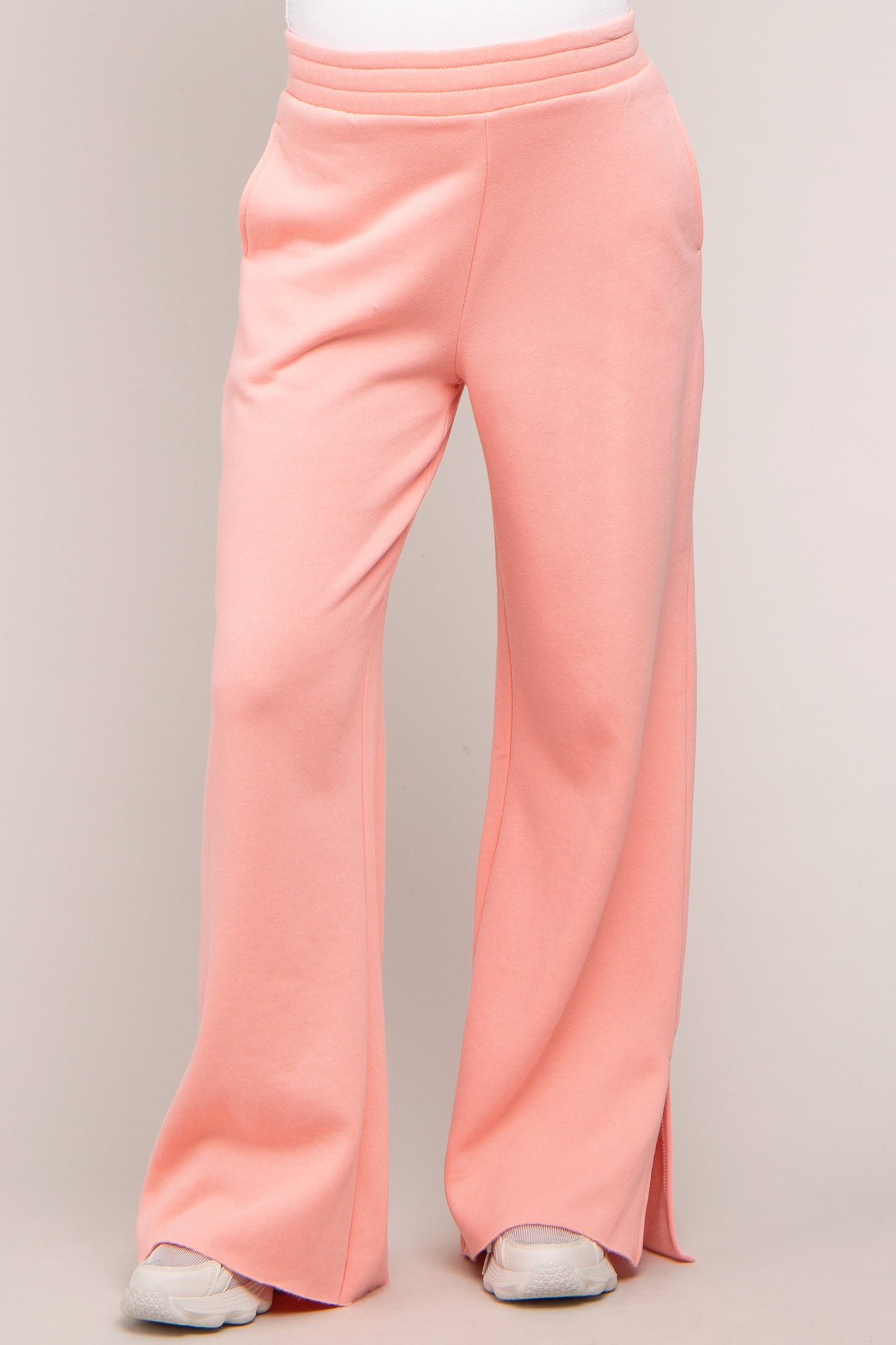 Pink Soft Wide Leg Side Slit Maternity Sweatpants