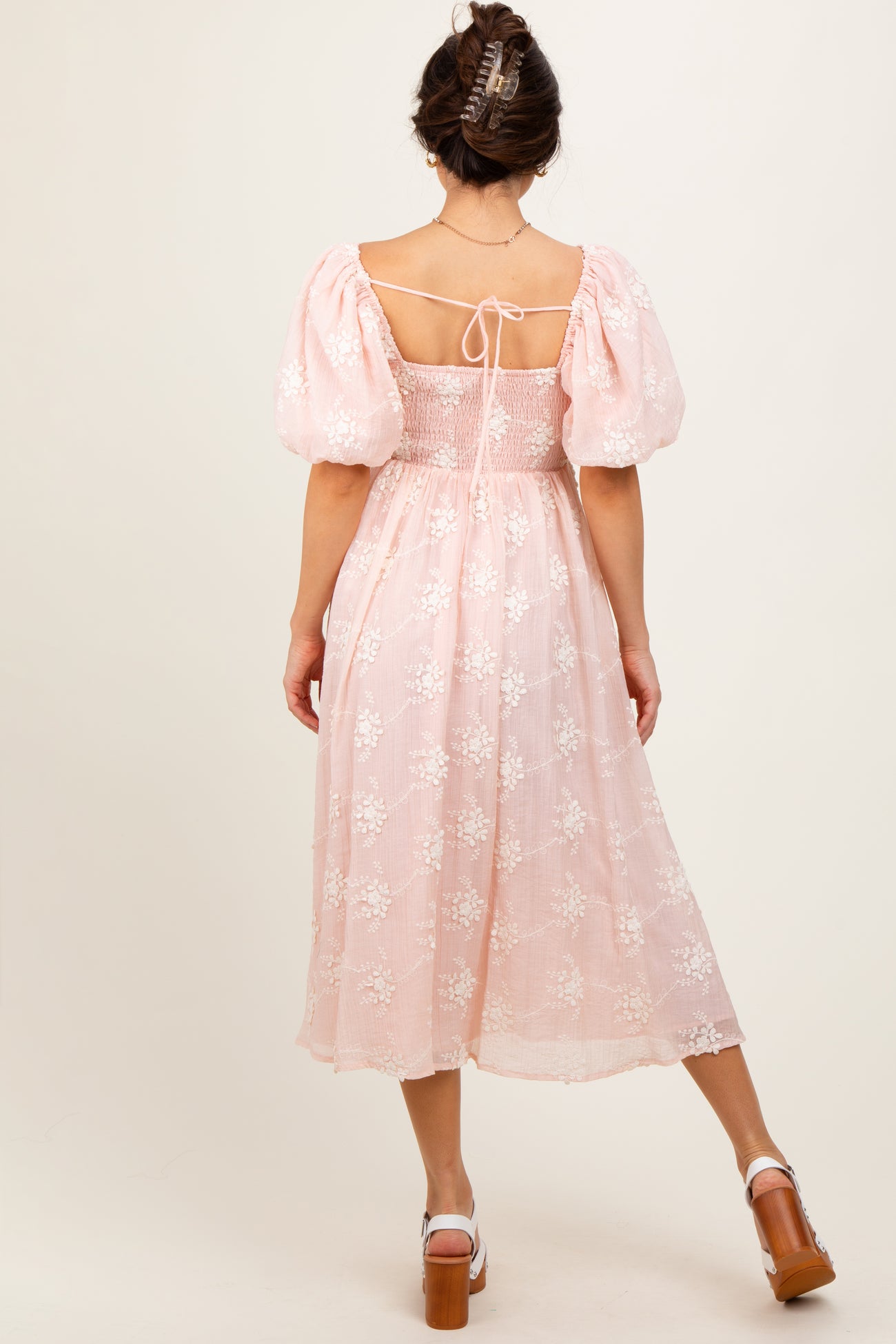 Step into effortless elegance with our Pink Textured Midi Dress. Featuring a delicate floral embossed fabric, this dress blends classic charm with modern style. The square neckline and voluminous puff sleeves create a flattering silhouette, while the fitted bodice flows into a soft, gathered midi skirt for comfortable movement. Perfect for daytime events, garden parties, or weekend brunches, this dress pairs beautifully with your favorite sandals or heels. Embrace femininity and timeless grace in this must-have piece for your wardrobe. Available in sizes XS to XL.