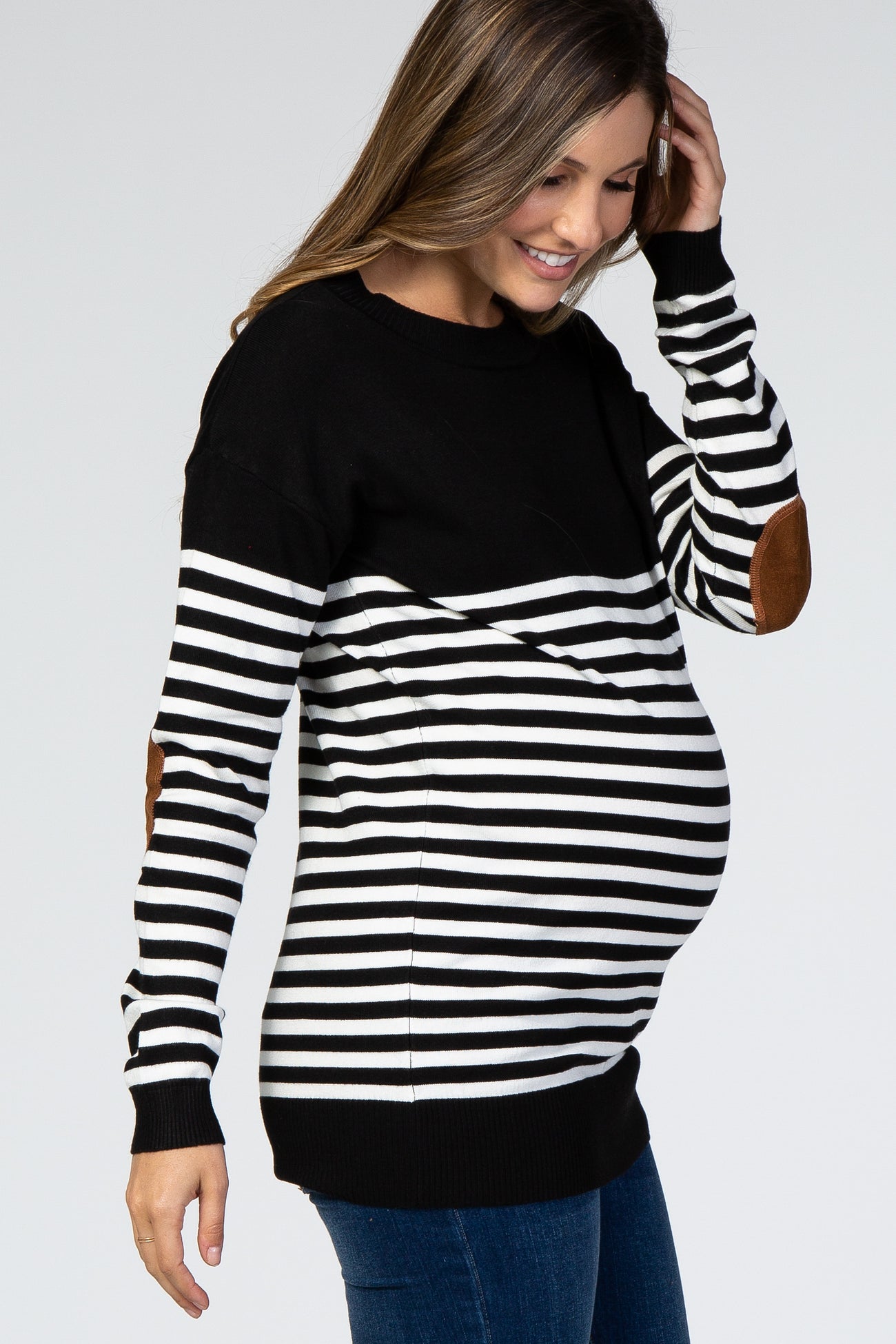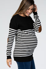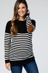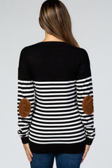 PinkBlush Black Striped Elbow Patch Knit Maternity Sweater